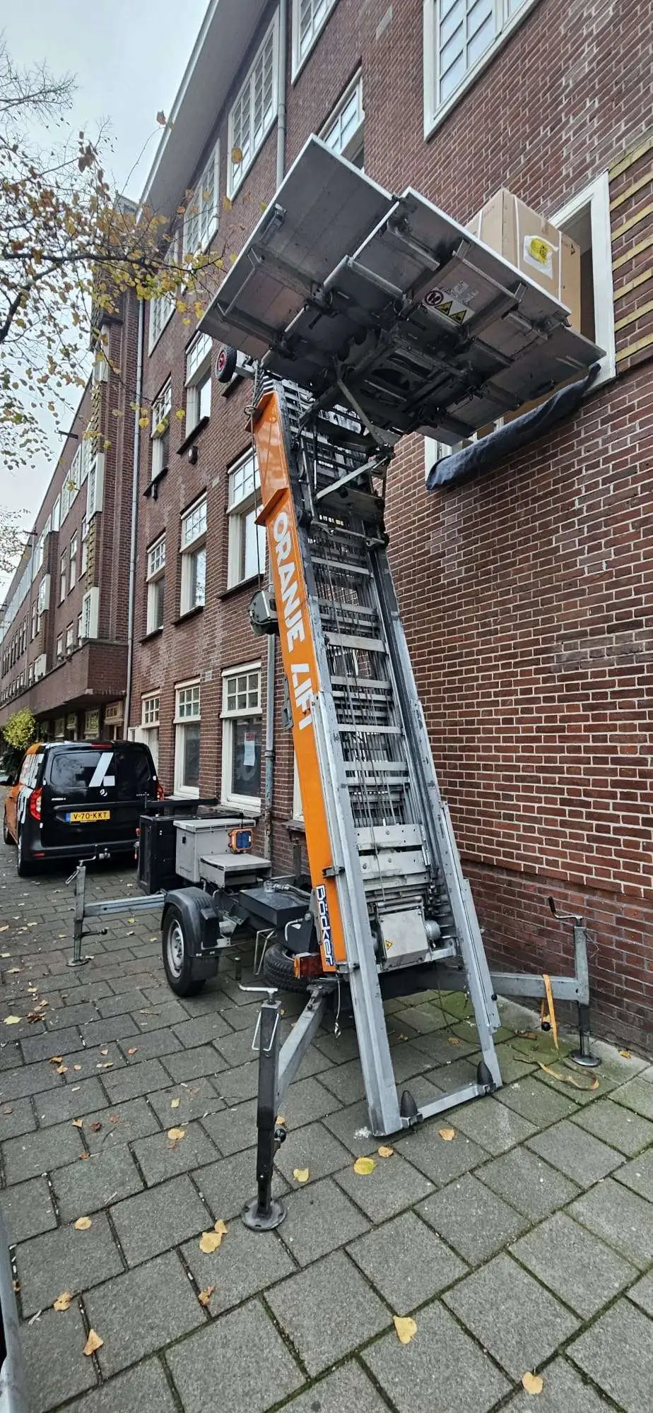 Alle aanhangerliften worden bediend door gecertificeerde operators. Zij beschermen je gevel, je meubels en je kozijnen. Schade? In 25+ jaar hebben we vrijwel nooit een schadeclaim gehad. We werken met een bedrijfsaansprakelijkheidsverzekering, voor het geval dat. Lees meer over ons team en onze werkwijze of bekijk onze recente projecten voor een impressie.